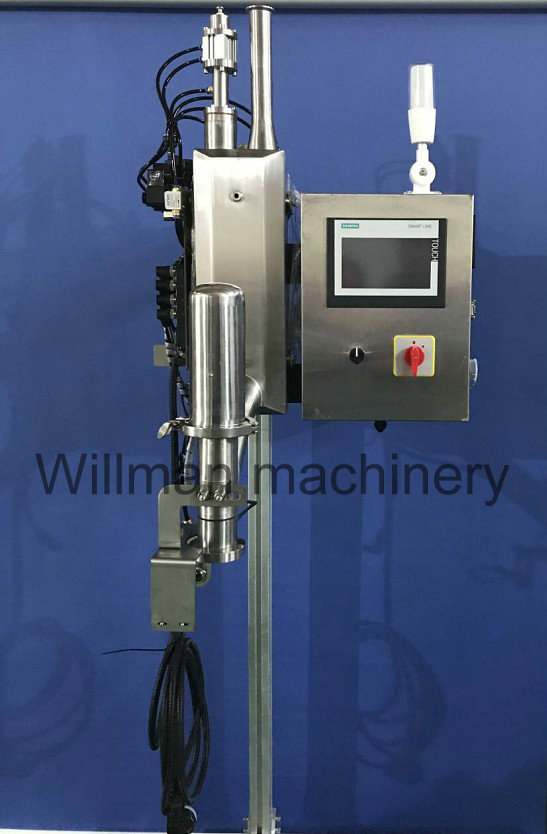 液氮加注機(jī)包括固定座、設(shè)有進(jìn)液口和出液口并與固定座固定連接的保溫儲(chǔ)存筒、保溫加注頭、兩端分別與出液口和保溫加注頭連接的保溫輸液管。液氮加注機(jī)使用時(shí),進(jìn)液口與真空液氮輸送管道連接,需要加注液氮時(shí),保溫儲(chǔ)存筒經(jīng)保溫輸液管通過(guò)保溫加注頭將液氮加注入鋁罐中;液氮加注機(jī)也可以用于其他食品軟包裝的液氮加注。并且液氮加注機(jī)結(jié)構(gòu)緊湊用于非碳酸飲料鋁罐液氮加注操作方便和液氮純液相質(zhì)量較好。